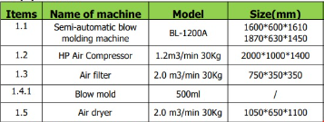 The BL-1200A is specifically designed to blow mold PET (Polyethylene Terephthalate) bottles.