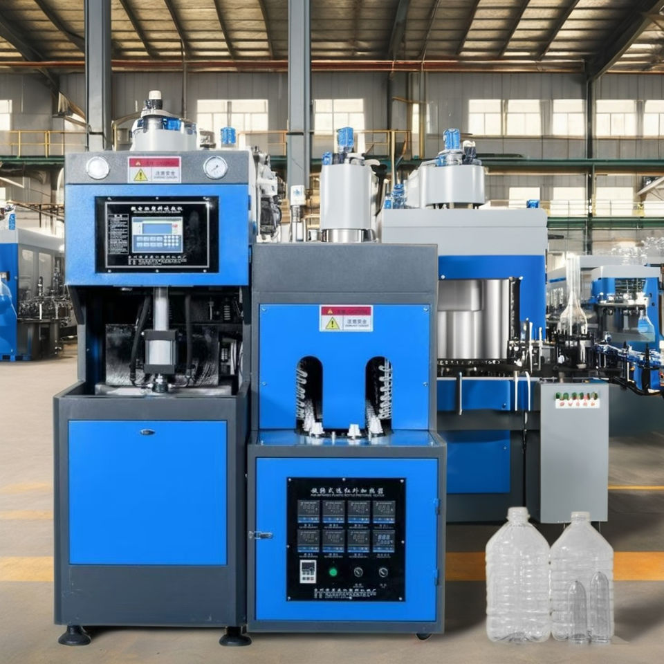 The Semi-Automatic Mini PET Bottle Blowing Machine is designed for efficiency and high productivity. This compact machine can create 5-liter PET bottles quickly and easily. It features advanced components like a reliable motor, PLC, and pump, making it a great choice for small to medium-scale production. With its user-friendly design, you can operate it with minimal training.