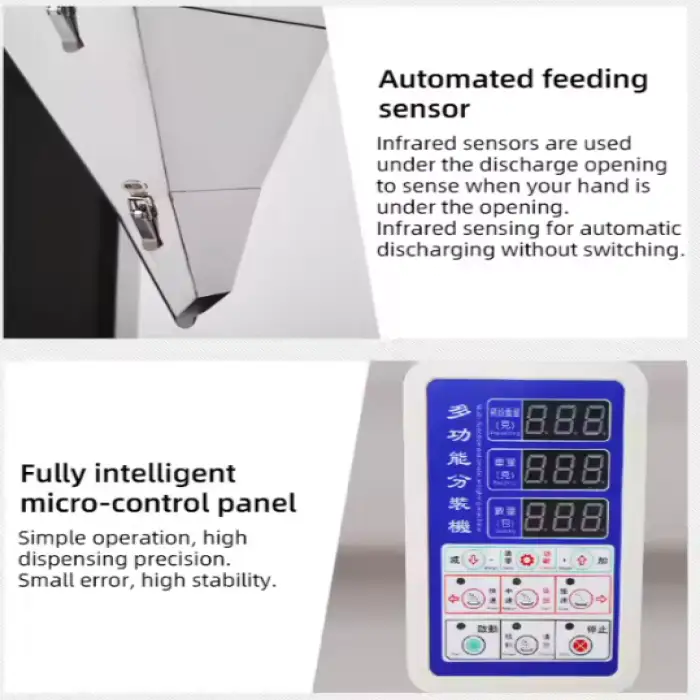 The machine offers a filling accuracy of +0.2g, ensuring precise measurements for your products.