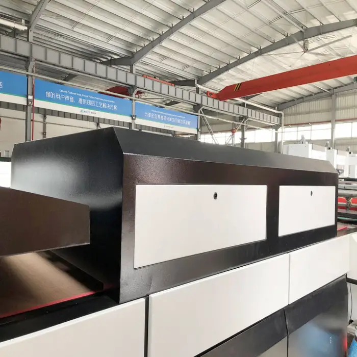 Key features include high-speed operation, support for various paper sizes and thicknesses, multiple infrared and ultraviolet lamps, and a sturdy design with quality components.