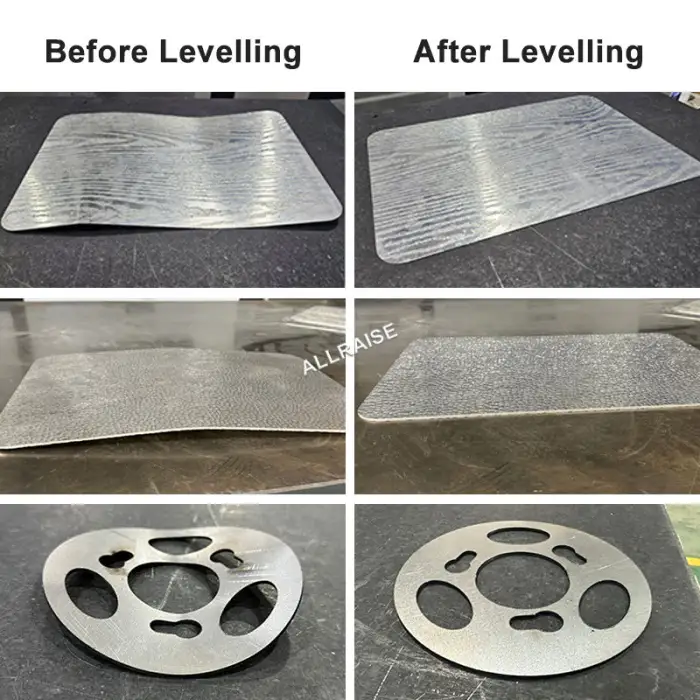 This machine is suitable for leveling various materials including stainless steel, aluminum plates, and galvanized plates.