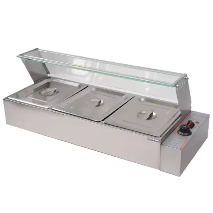 The food warmer is made from durable SS201 stainless steel material.