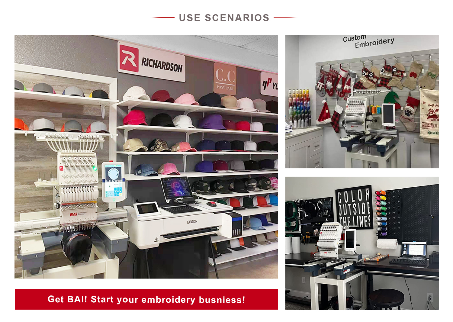 You can embroider on a variety of items including hats, flats, T-shirts, pockets, logos, patches, shoes, and socks.