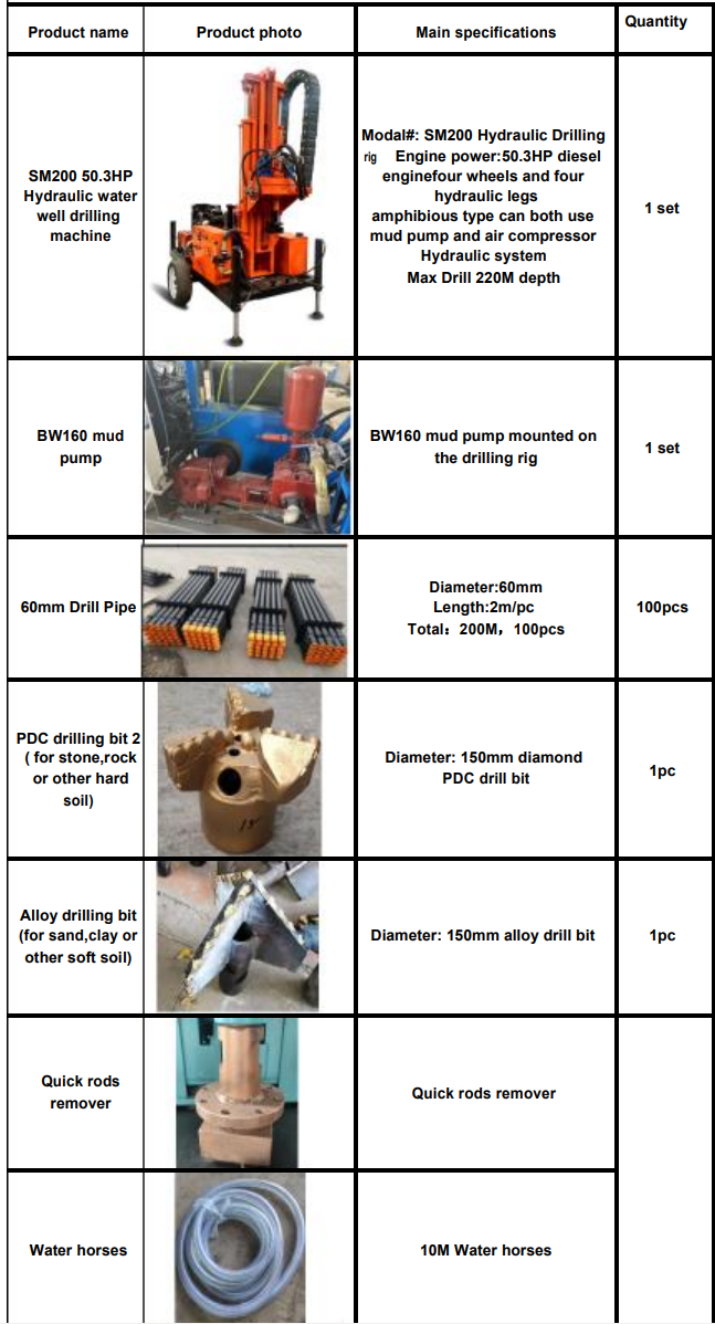 The SM200 can drill wells to a maximum depth of 220 meters.