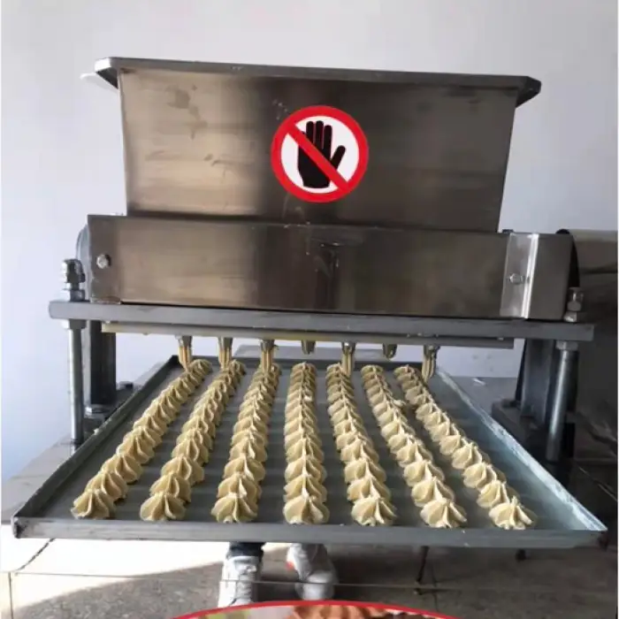 The Small Automatic Cookies Making Machine is constructed from high-quality stainless steel, ensuring durability and safety.