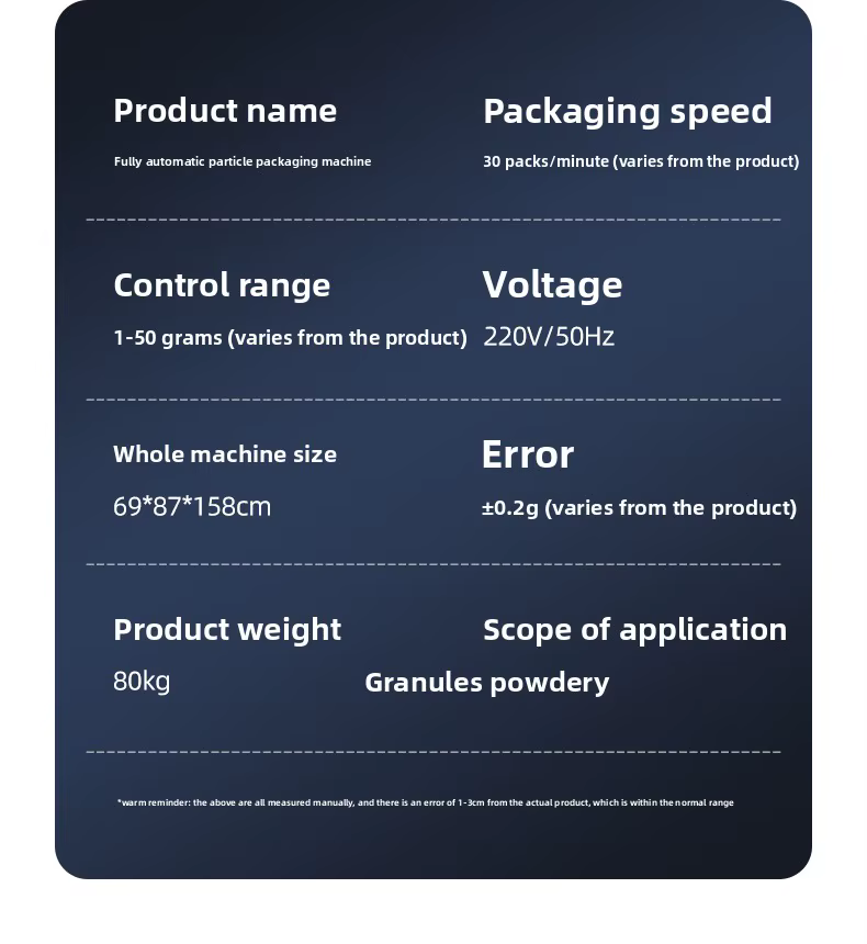The machine boasts a filling accuracy of 100.0%, ensuring precision in the packaging process.