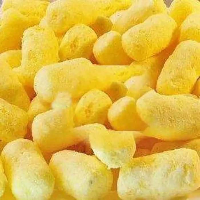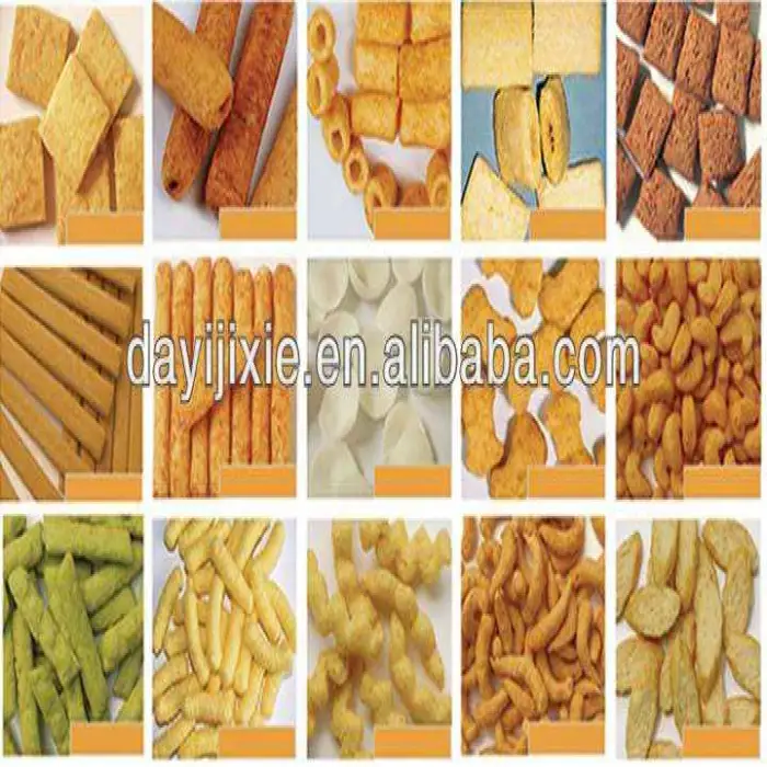 This machine is capable of creating a variety of puffed snacks, primarily focusing on corn snacks.