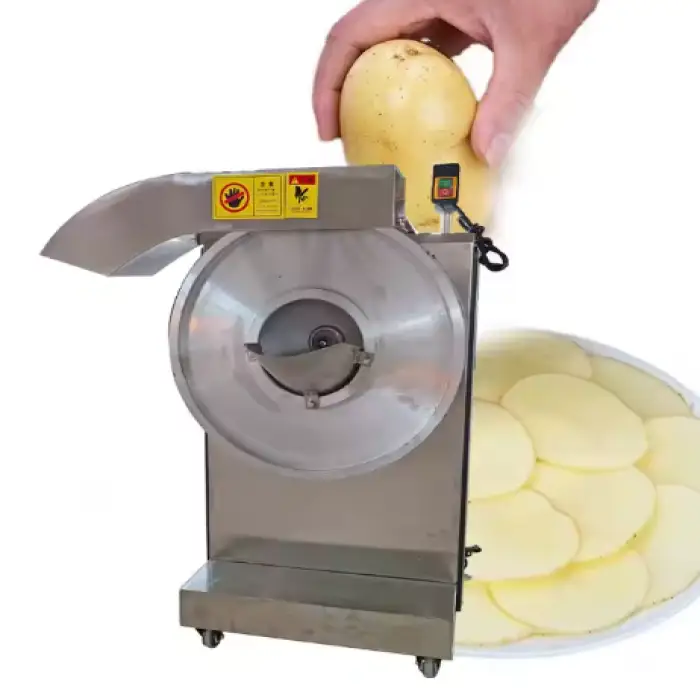 The efficient potato slicing mechanism guarantees uniformity in chip size, enhancing the quality of the final product.