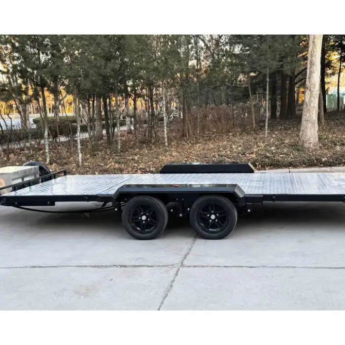 The trailer is equipped with advanced braking systems, including electric brakes, air brakes, and inertial brakes for added safety.