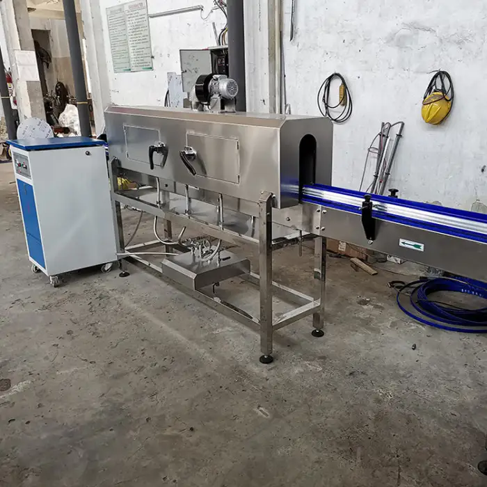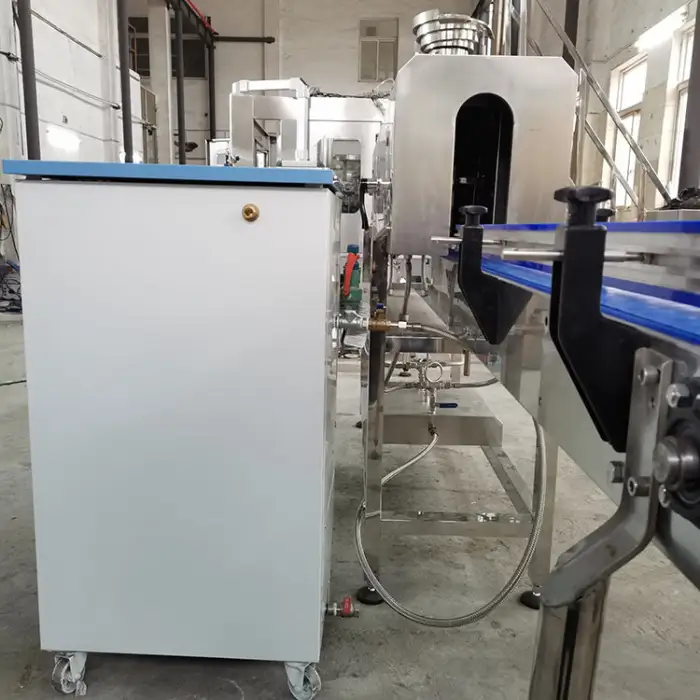 This machine is designed to accommodate a variety of bottle sizes and types, including both plastic and glass bottles.