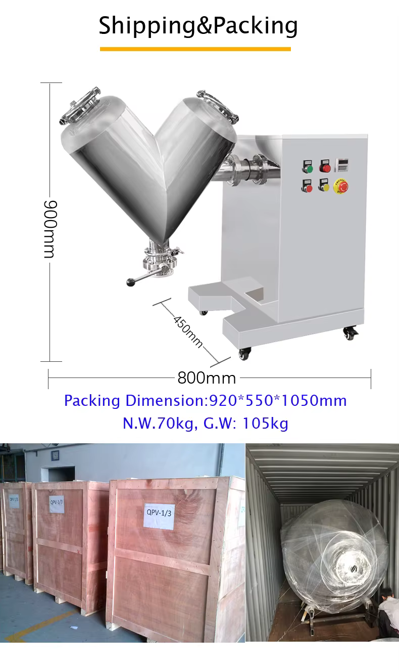 The Small V Type Powder Mixer Machine includes safety features such as a secure locking mechanism and user-friendly controls to ensure safe operation.