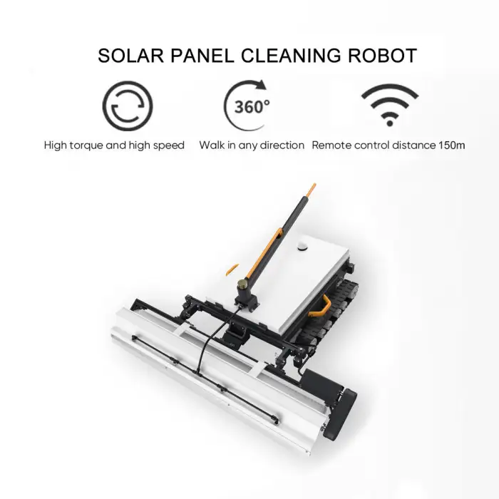 The robot uses a combination of dry cleaning technology and a specialized cleaning brush to remove dirt, dust, and debris from solar panels.