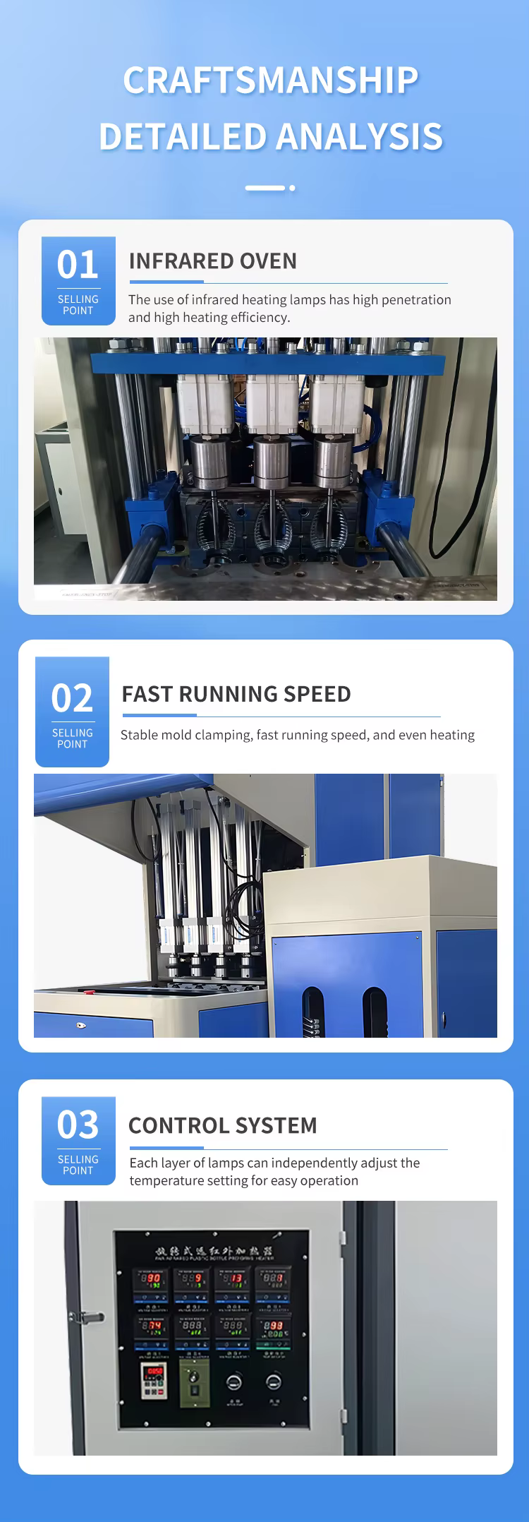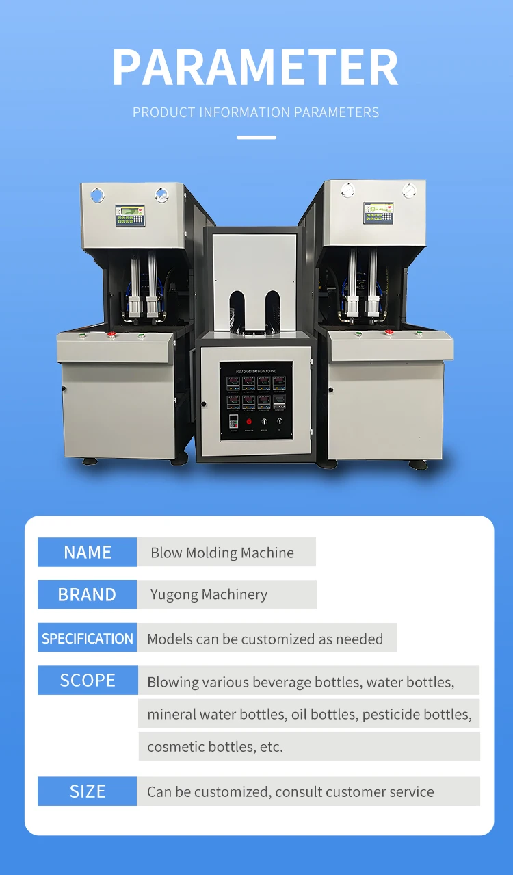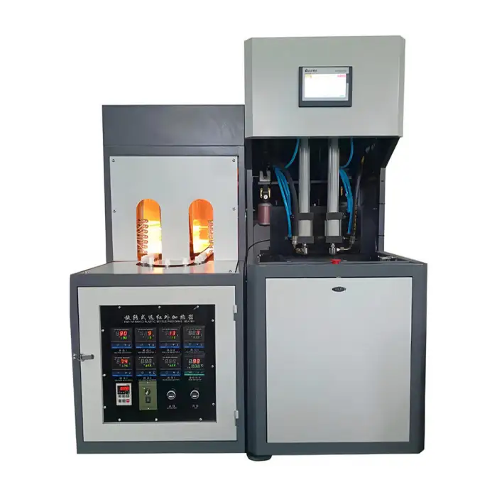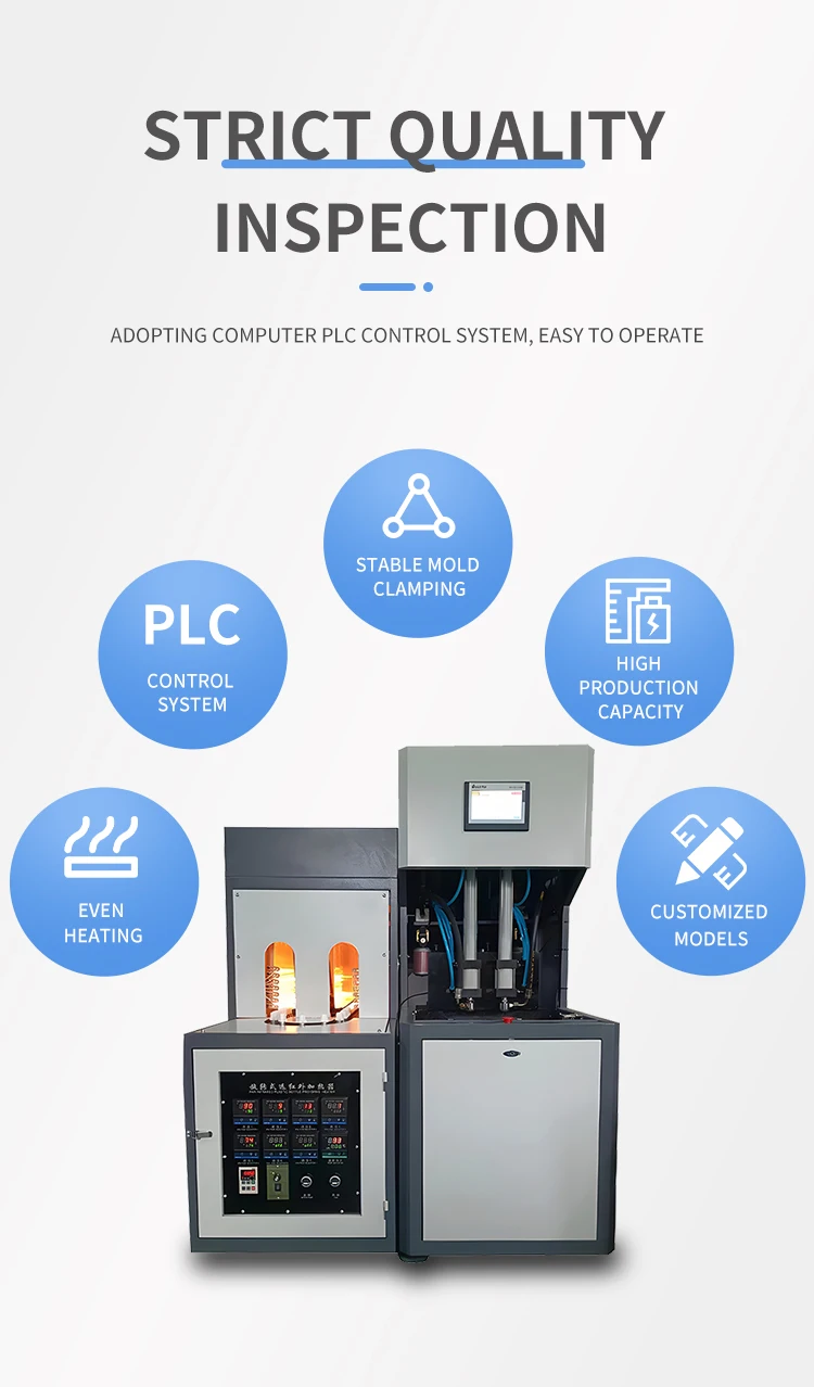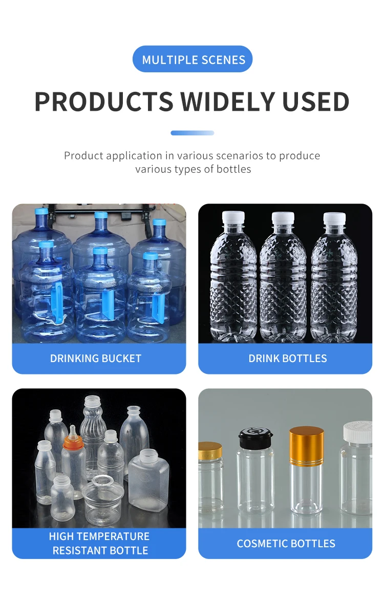 The machine is suitable for manufacturing drink bottles, household product bottles, personal care item containers, and packaging industries for plastic bottle production.