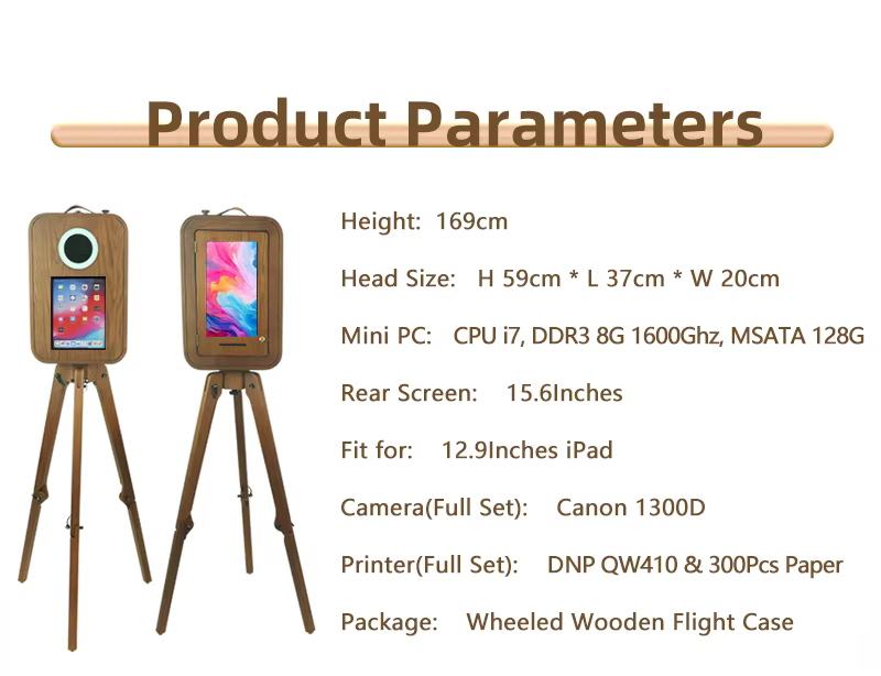 The Solid Wooden Photo Booth is designed for the 12.9" iPad.