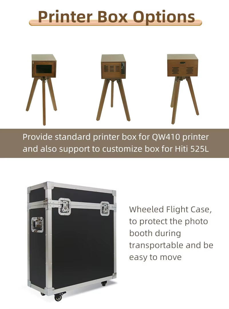 Yes, the Solid Wooden Photo Booth includes a sturdy wooden printer stand for convenience.