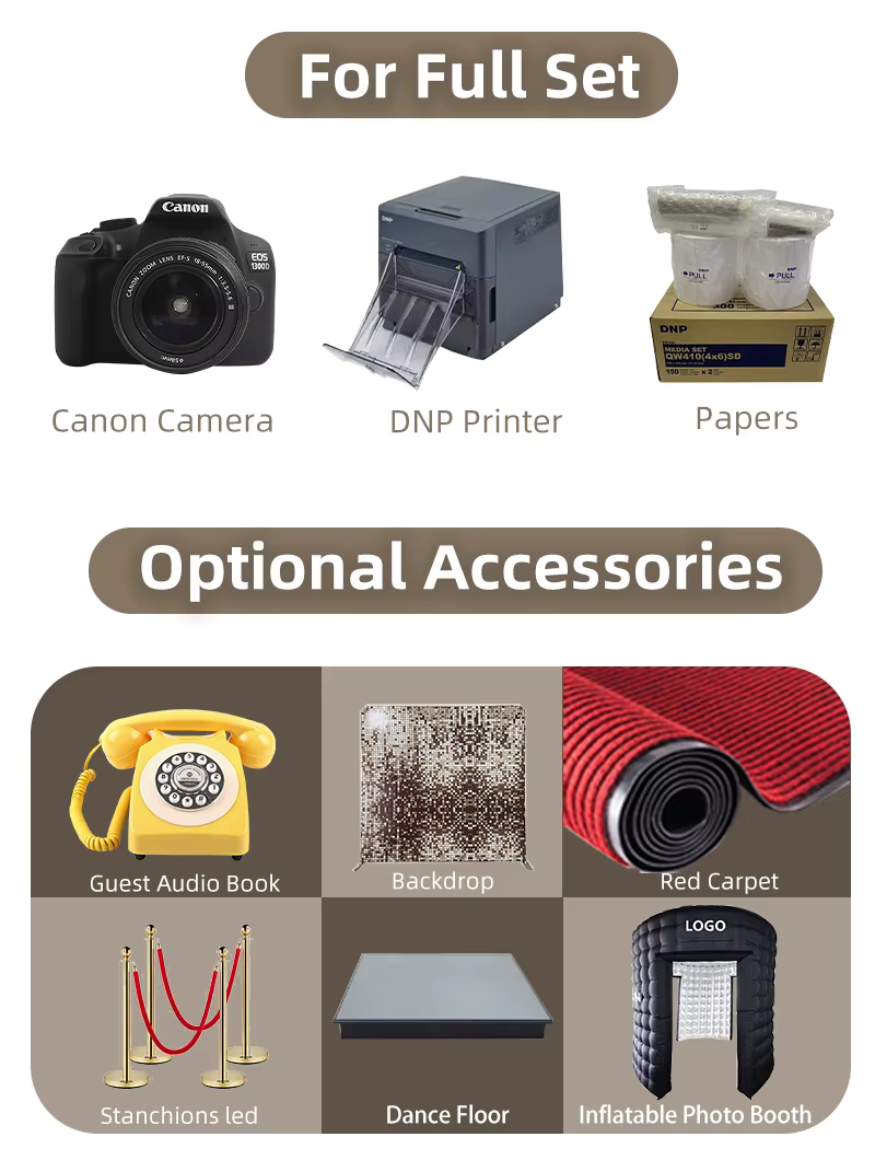 Weighing only 17.5 kg, the photo booth is designed for easy transport, allowing you to take it to various events.