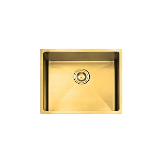 The sink features a gold plated brushed finish, adding a touch of elegance to your kitchen.
