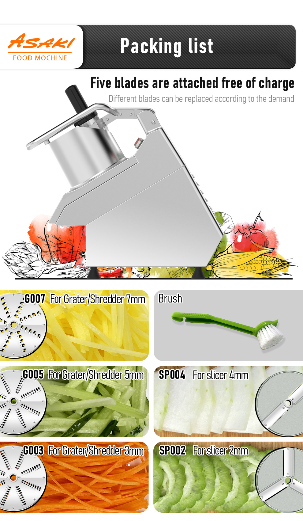Throughput depends on the model, blade choice and the type of vegetable. The unit is designed for efficient batch processing and is generally much faster than manual cutting, but consult the product specs or supplier for estimated kg/hour figures for your intended use.