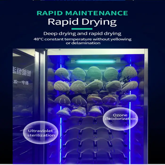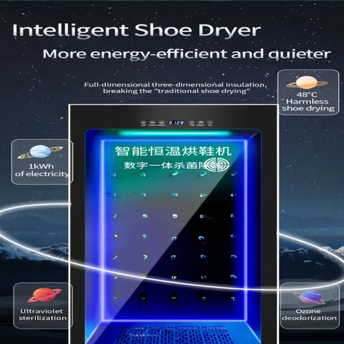 The shoe dryer cabinet is made from stainless steel, ensuring durability and a stylish appearance.