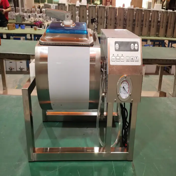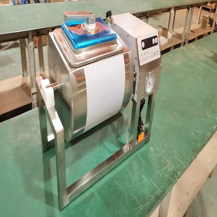 The machine has a large capacity of 18 liters, allowing you to marinate multiple batches of meat at once.