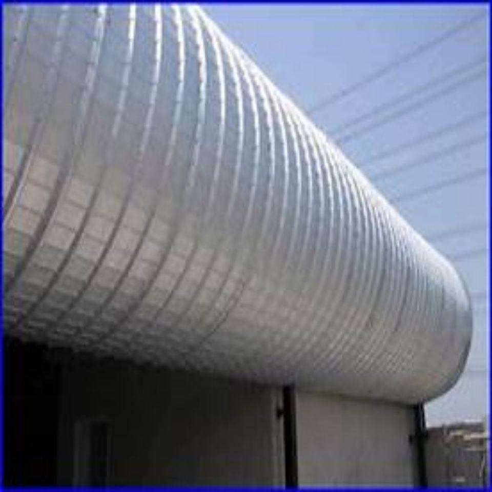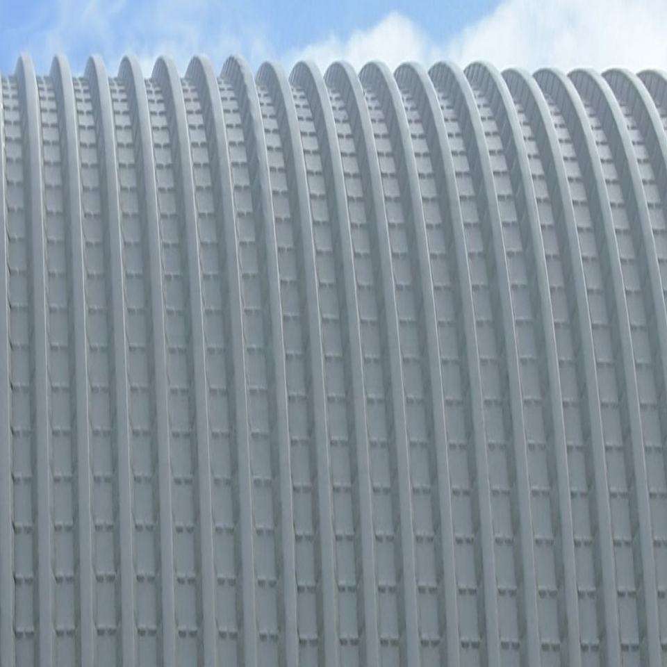 Curving steel roofing sheets for commercial buildings.