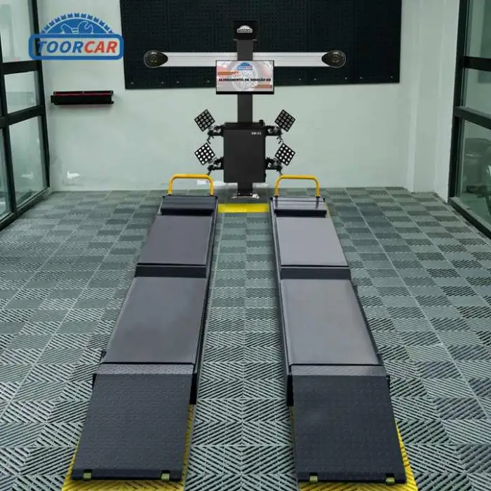 The 3D wheel alignment system utilizes advanced technology to provide precise measurements for accurate alignment adjustments.