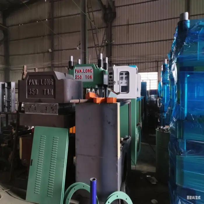The machine includes safety mechanisms to protect operators and ensure safe operation during the production process.