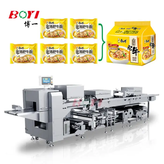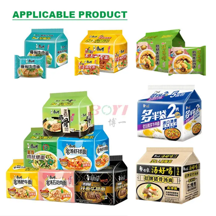 This machine is suitable for packaging food items like instant noodles, snack foods, confectionery, and ready-to-eat meals.