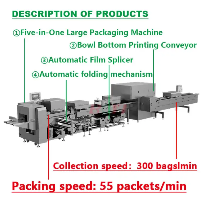 The packing speed of the machine ranges from 15 to 55 packets per minute.