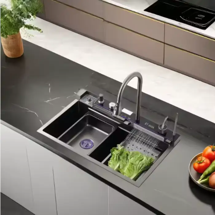 The sink enhances the look of modern kitchen designs with its sleek and stylish appearance.