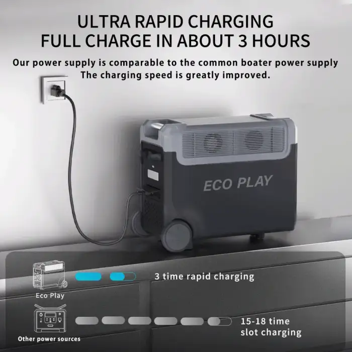 The charging time using solar panels will depend on the wattage of the panels and sunlight conditions, but the built-in MPPT controller helps optimize charging efficiency.