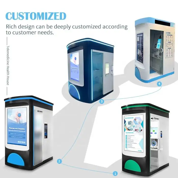 The kiosk has a compact and stylish design that can fit into any clinic or health center environment.