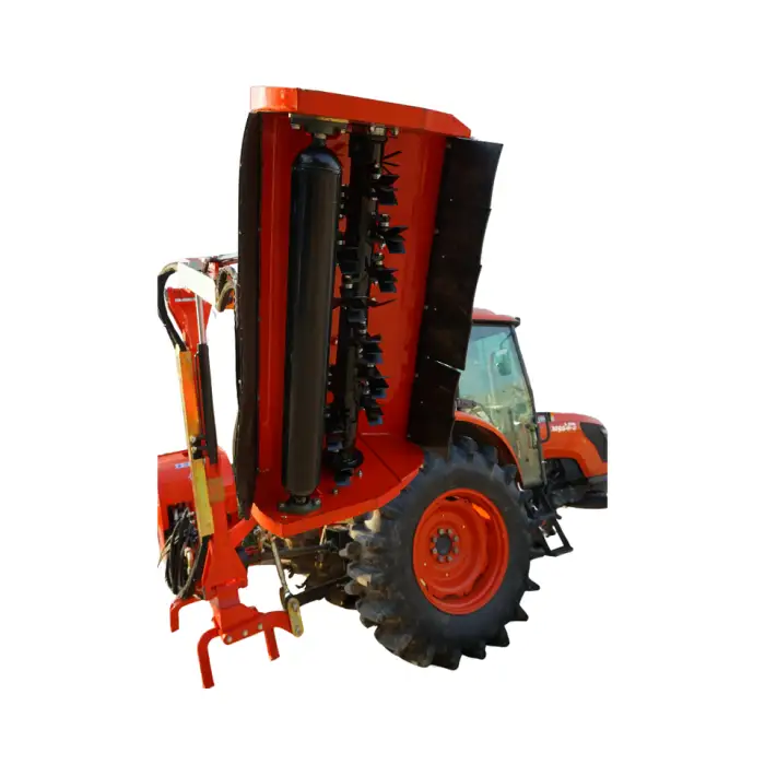 The Telescopic Hedge Cutter Arm Mulching Machine is PTO driven, which means it connects to a tractor's power take-off.