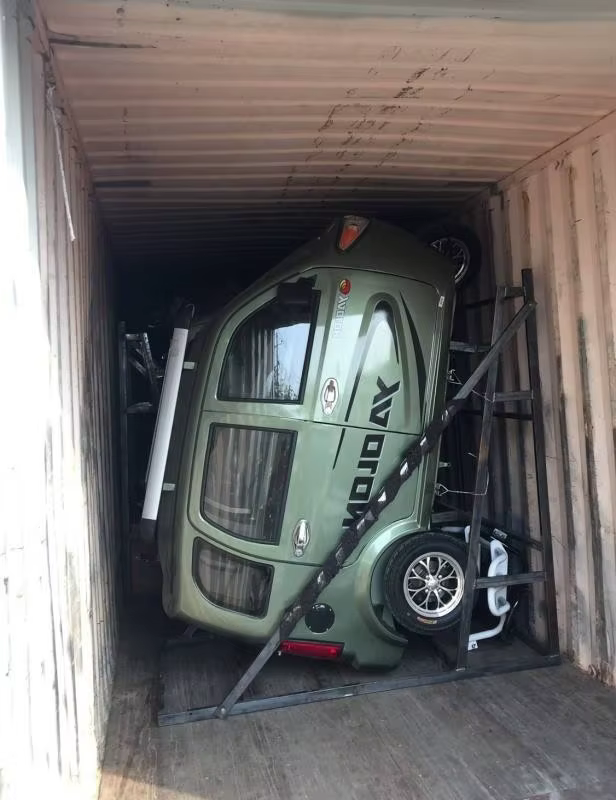 The vehicle is equipped with 43 hydraulic damping front shocks for a smooth ride.
