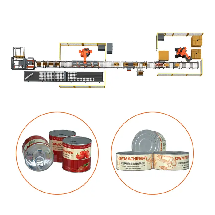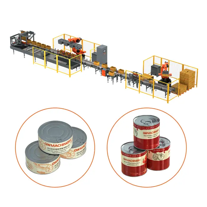 The main function of the machine is to provide an automatic carton packaging line for tin cans and other products.