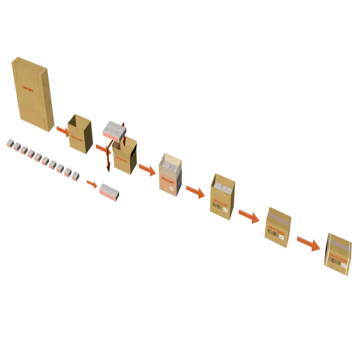 The machine utilizes advanced technology to ensure that products are securely placed in cartons, preventing damage during shipping.