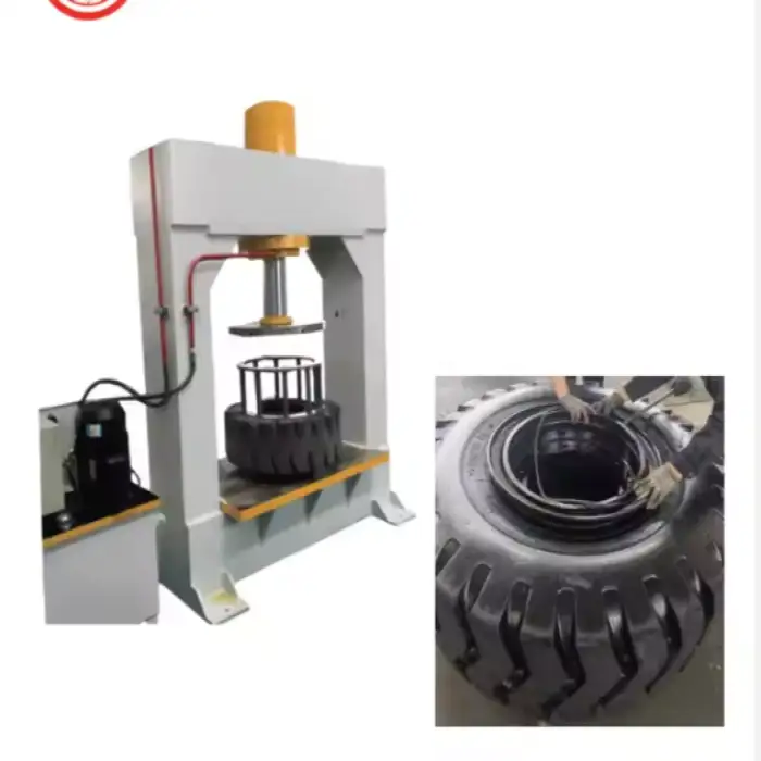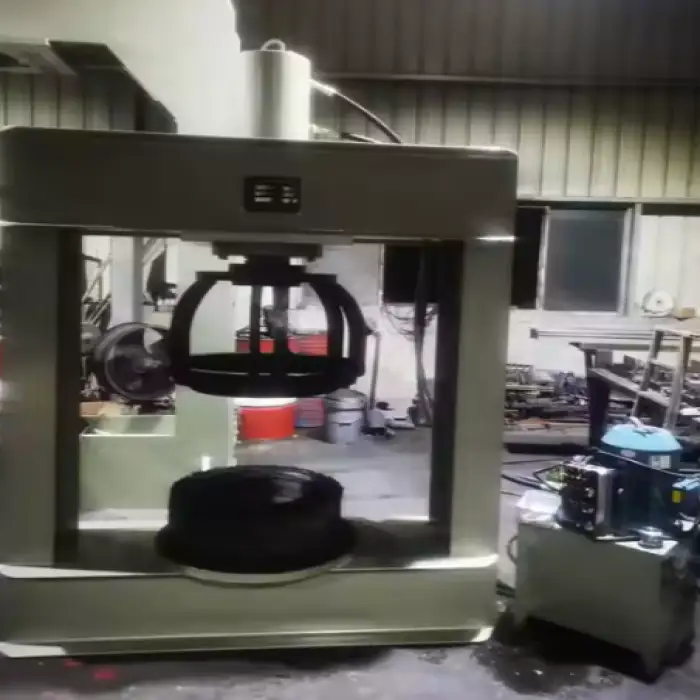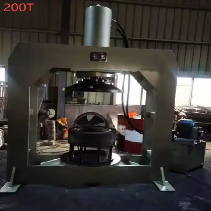 The Tire Press Heavy Duty Truck Tyre Changing Machine can handle solid tires with a weight capacity of up to 160 tons.