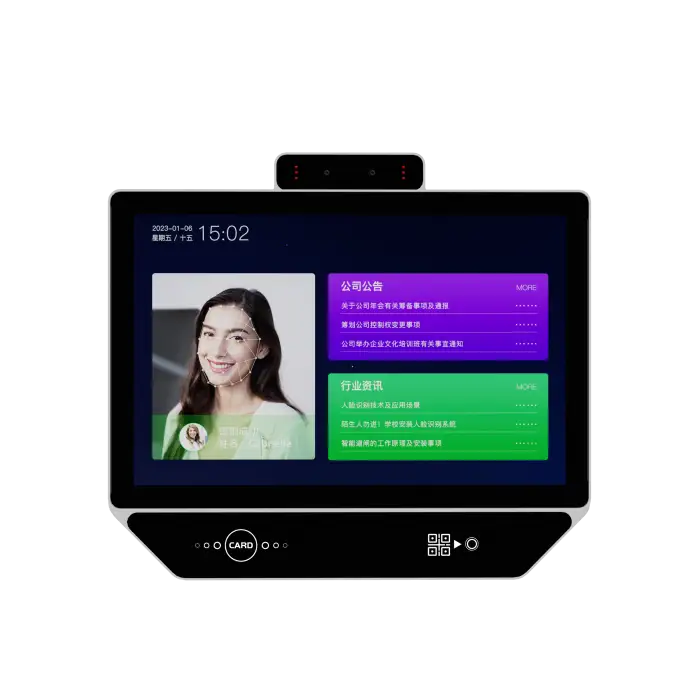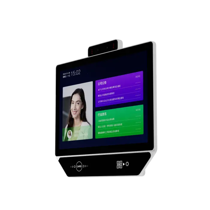 The terminal is equipped with a 2M pixel RGB camera and a 2M pixel infrared camera for reliable face recognition.