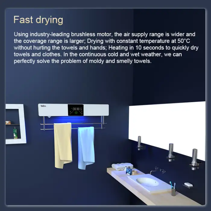 The Towel Drying Rack is designed to dry and sterilize towels using ultraviolet technology, ensuring they remain fresh and free of germs.