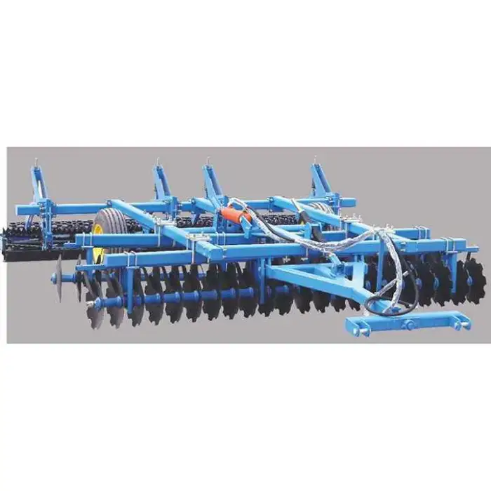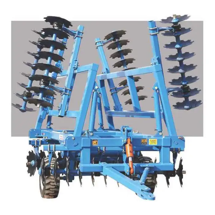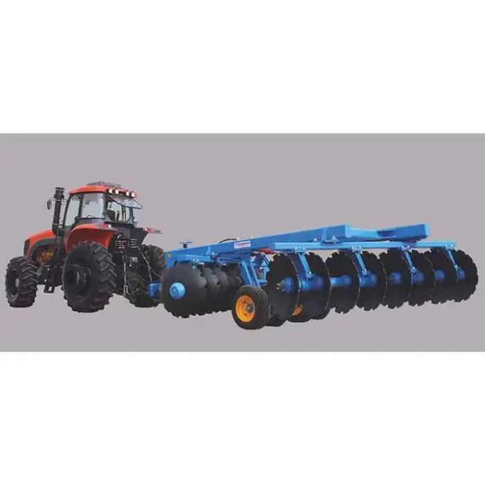 A Tractor Mounted Disc Cultivator is a farming implement designed to prepare soil for planting by breaking up hard soil layers and mixing it with organic materials.