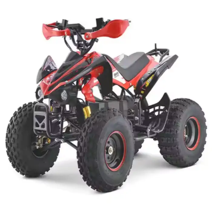 The ATV features a front disc and rear disc hydraulic brake system for enhanced safety.