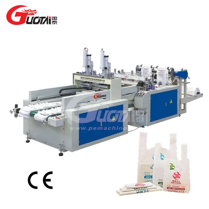 The GUOTAI High-Automatic T-Shirt Bag Making Machine is designed for high speed and efficiency, streamlining the bag production process.