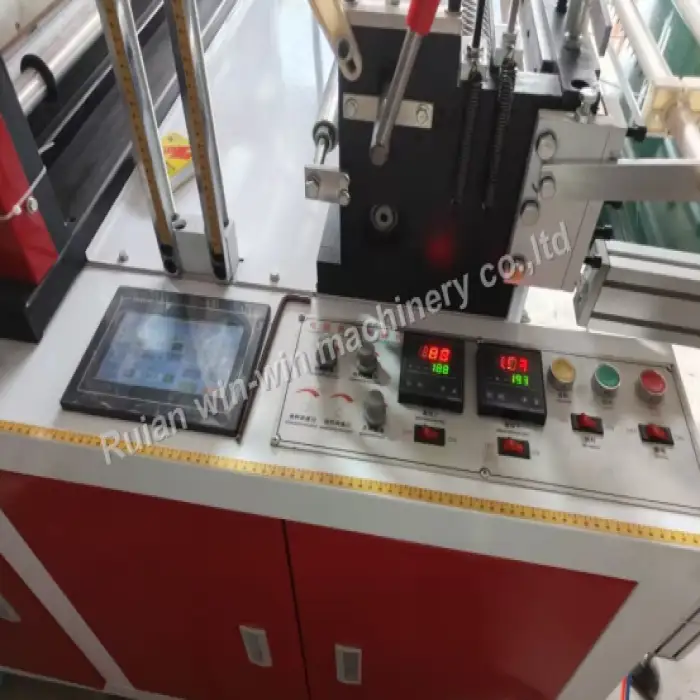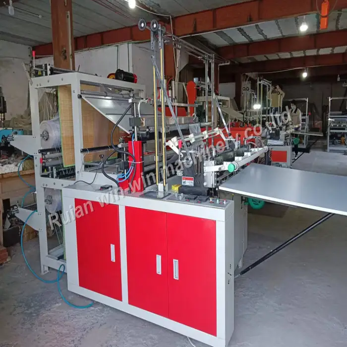 This machine can produce flat bags and T-shirt bags, making it versatile for various packaging needs.