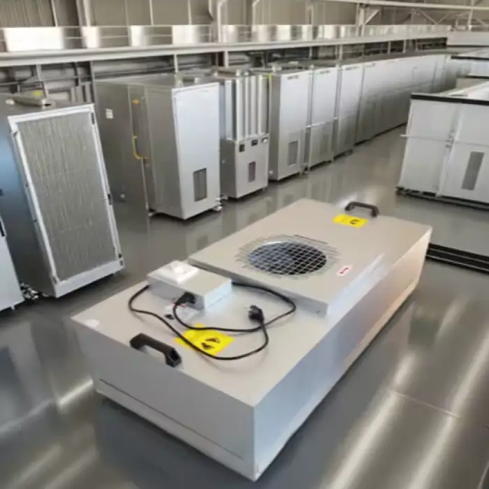 The laminar flow hood is constructed from durable glass fiber, which ensures longevity and reliability in a clean room setting.