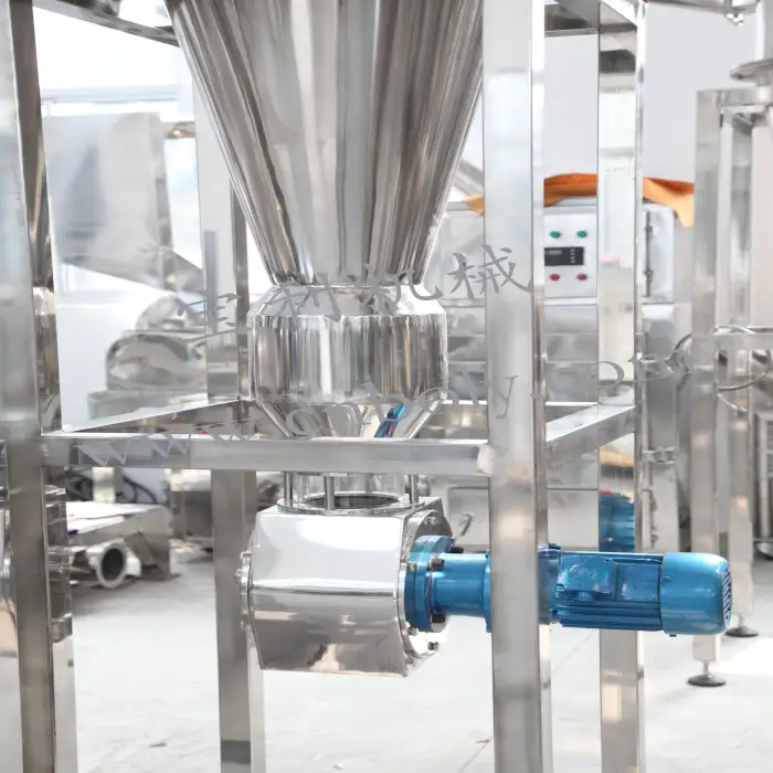 The pulverizer is constructed from durable stainless steel, specifically SUS304, SUS304L, SUS316, and SUS316L.