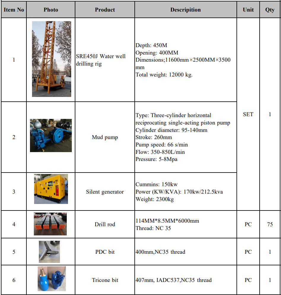 The SRE450J can drill holes with a maximum diameter of 300 mm, making it suitable for standard water well applications.