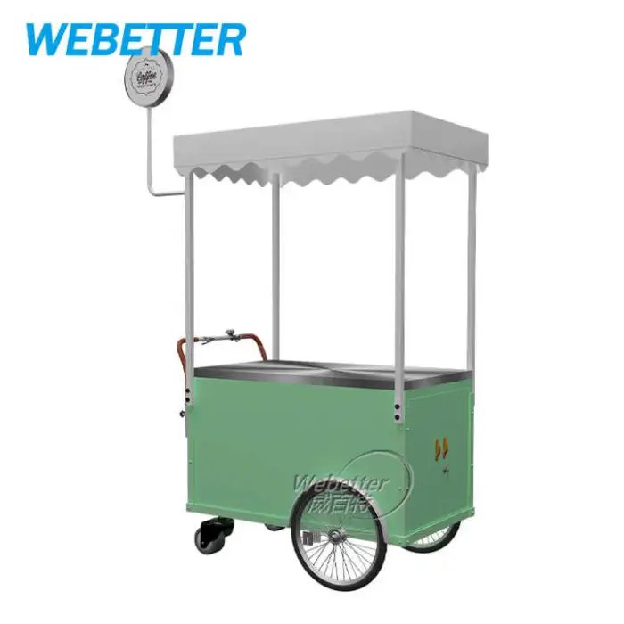 The cart is versatile and can be used to sell ice cream, snacks, drinks, coffee, tea, fast food, and even flowers.