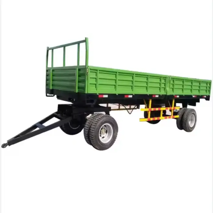 The trailer is ideal for hauling heavy loads on farms, transporting crops from fields to storage, moving materials like soil and fertilizers, and assisting in various agricultural operations.