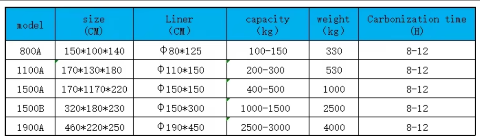 The Wood Charcoal Making Machine can process between 1000 to 1500 kg of wood, making it suitable for both small and large operations.