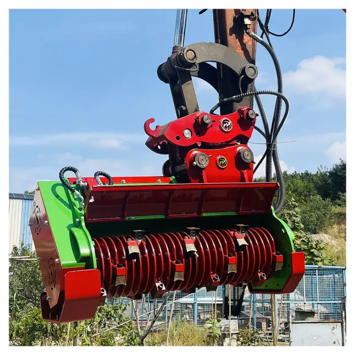 By attaching to an excavator, the Wood Mulcher enhances the efficiency and effectiveness of various landscaping and clearing tasks.